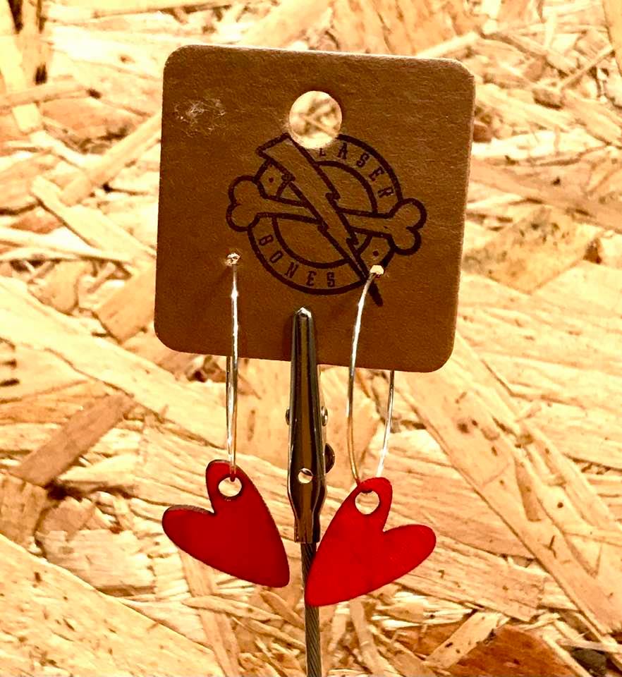 red heart hoop earrings