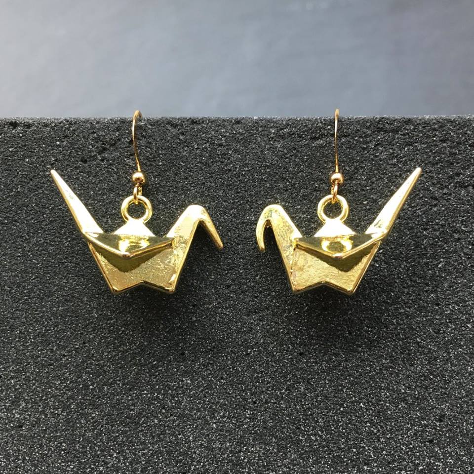 6 Gold Plated Ear Wires + Origami Bird