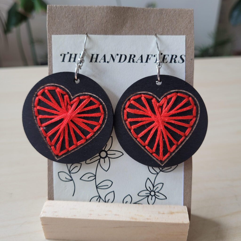embroidered heart earrings