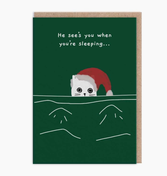 he sees you when you’re sleeping cat christmas card