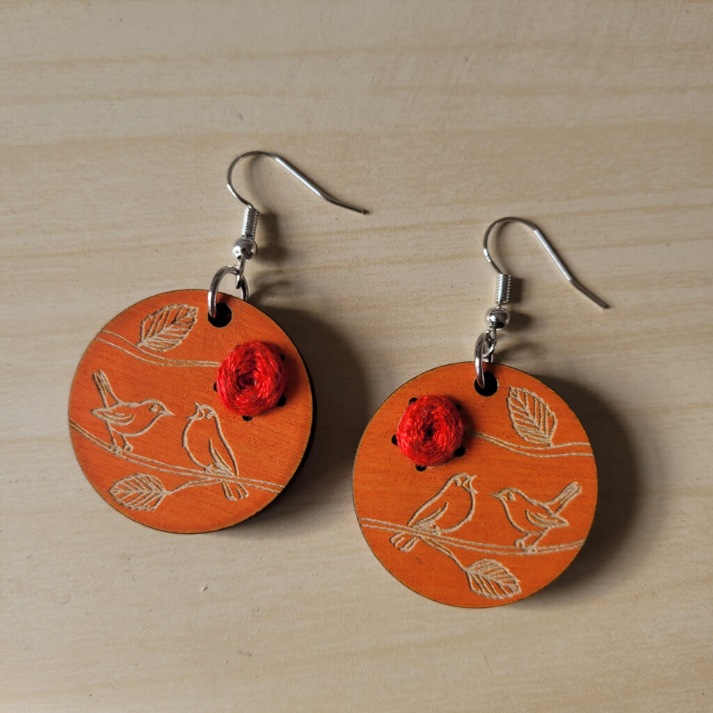 Orange bird and rose handmade earring