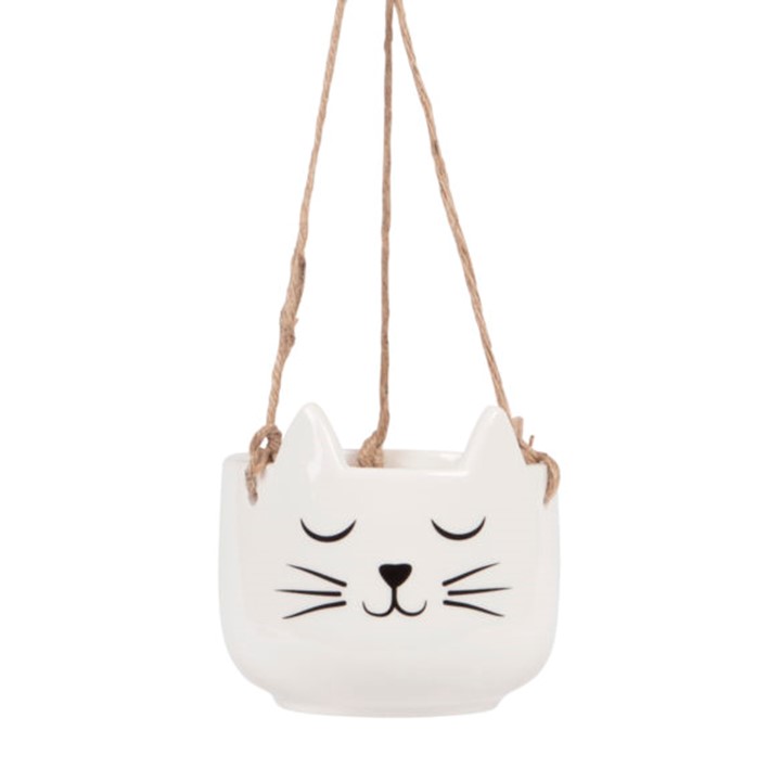White cat hanging planter